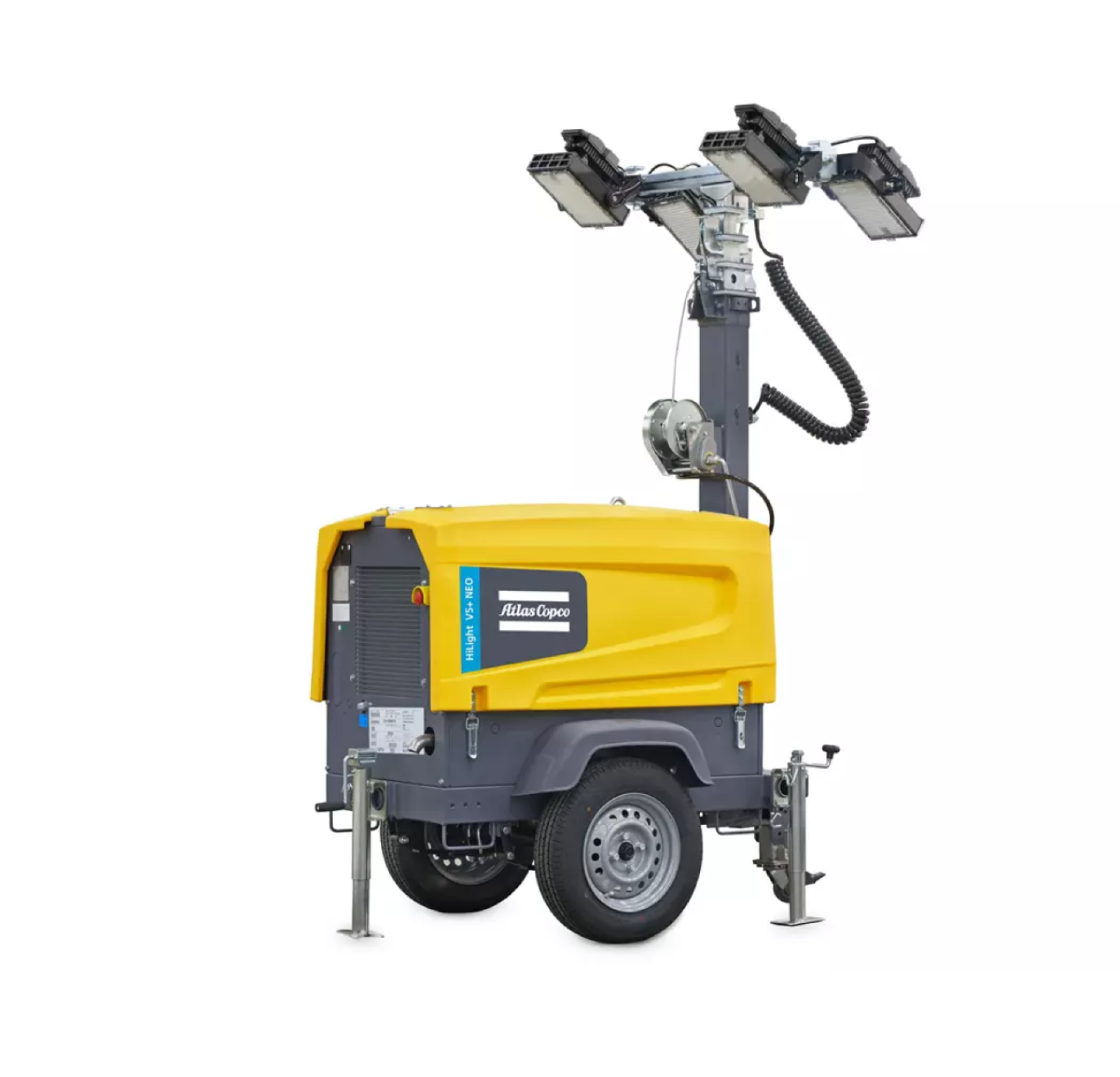 Atlas Copco HiLight V5+ LED toranj kombinuje kompaktan dizajn i visok stepen robusnosti za efikasno mobilno osvetljenje na gradilištima, industrijskim zonama, rudarskim lokacijama i terenskim događanjima. Dizelski motor Kohler omogućava neprekidan rad do 57 sati bez potrebe za dopunjavanjem goriva, dok sa četiri LED reflektora V5+ efikasno pokriva površinu od 5.000 m² uz prosečnu jačinu osvetljenja od 20 luksa.